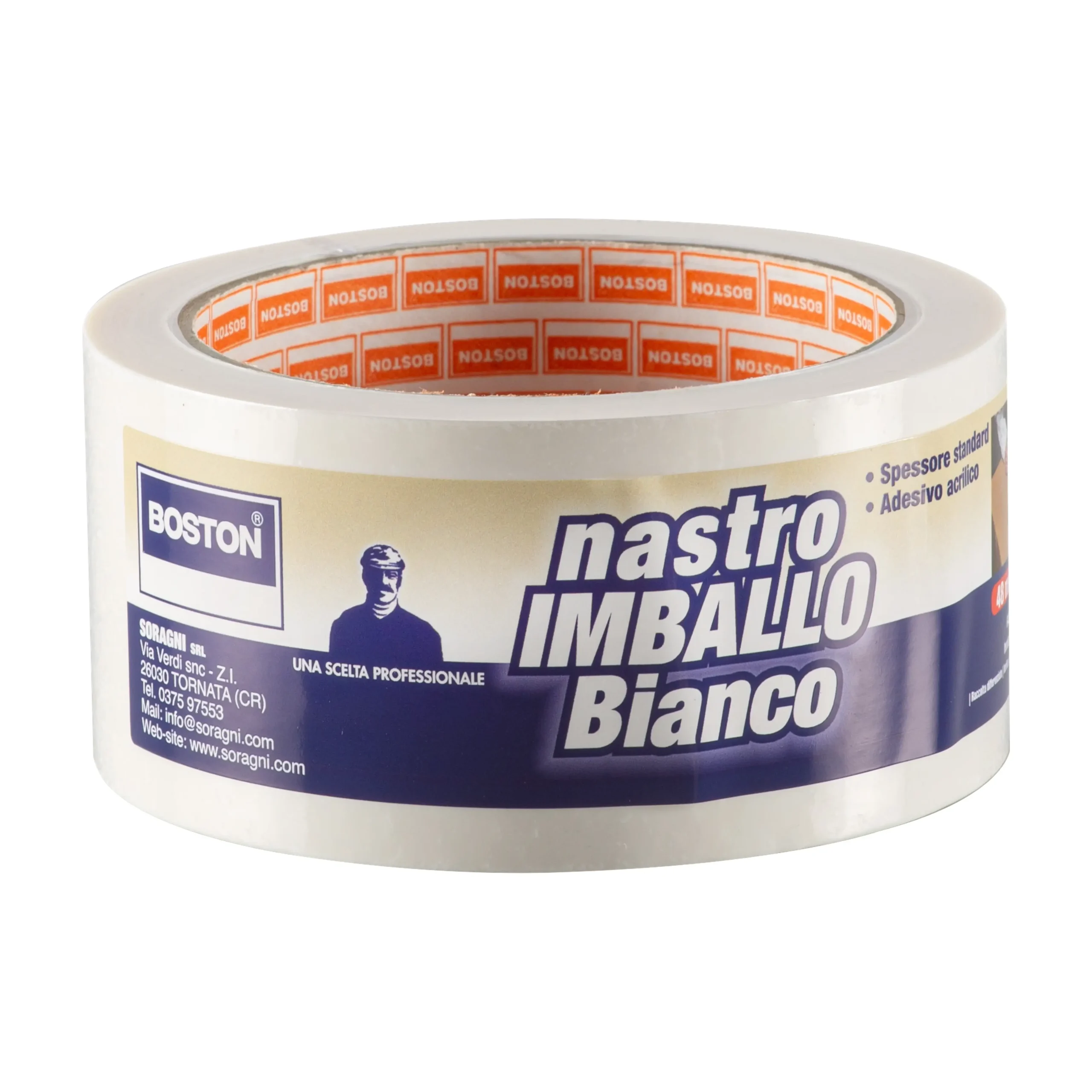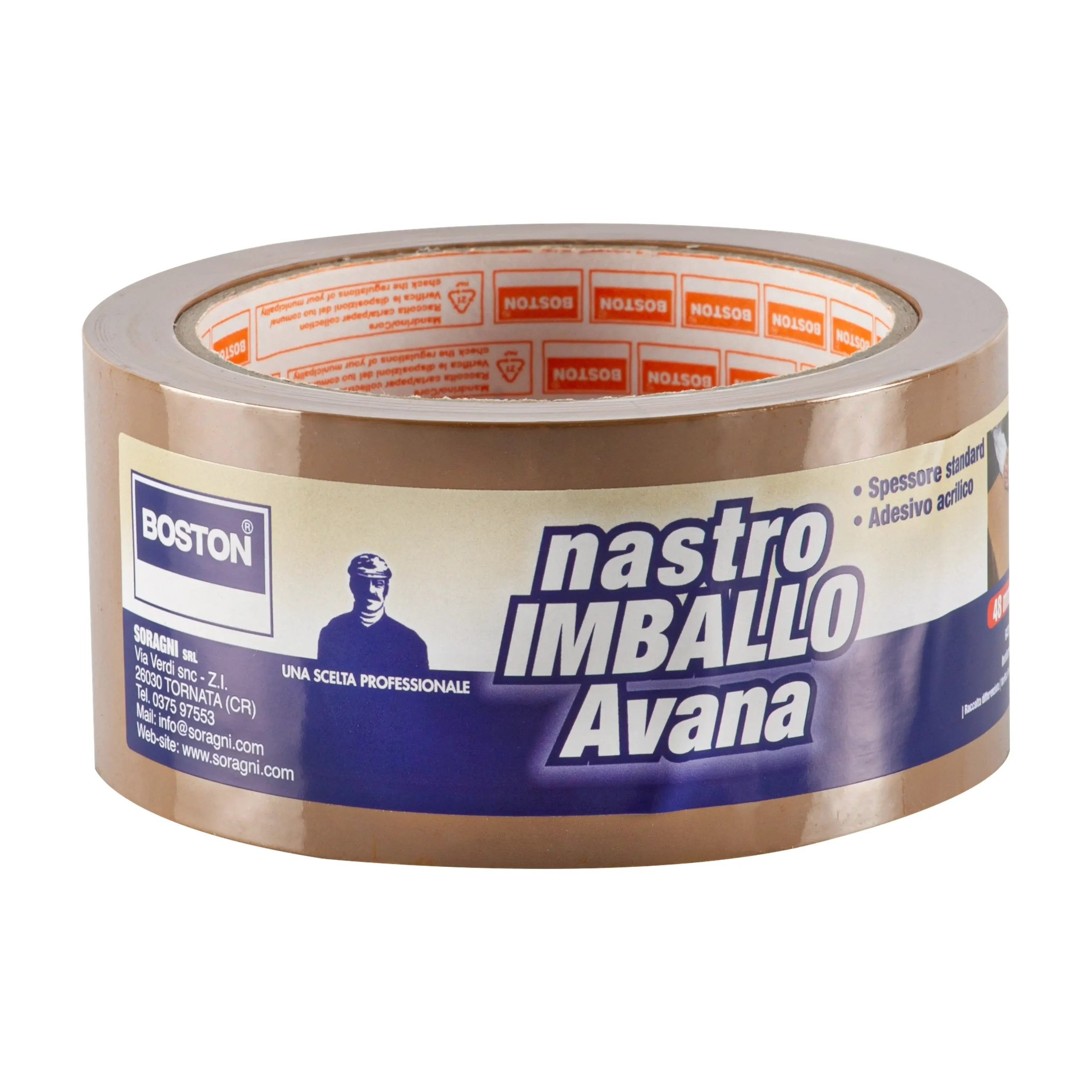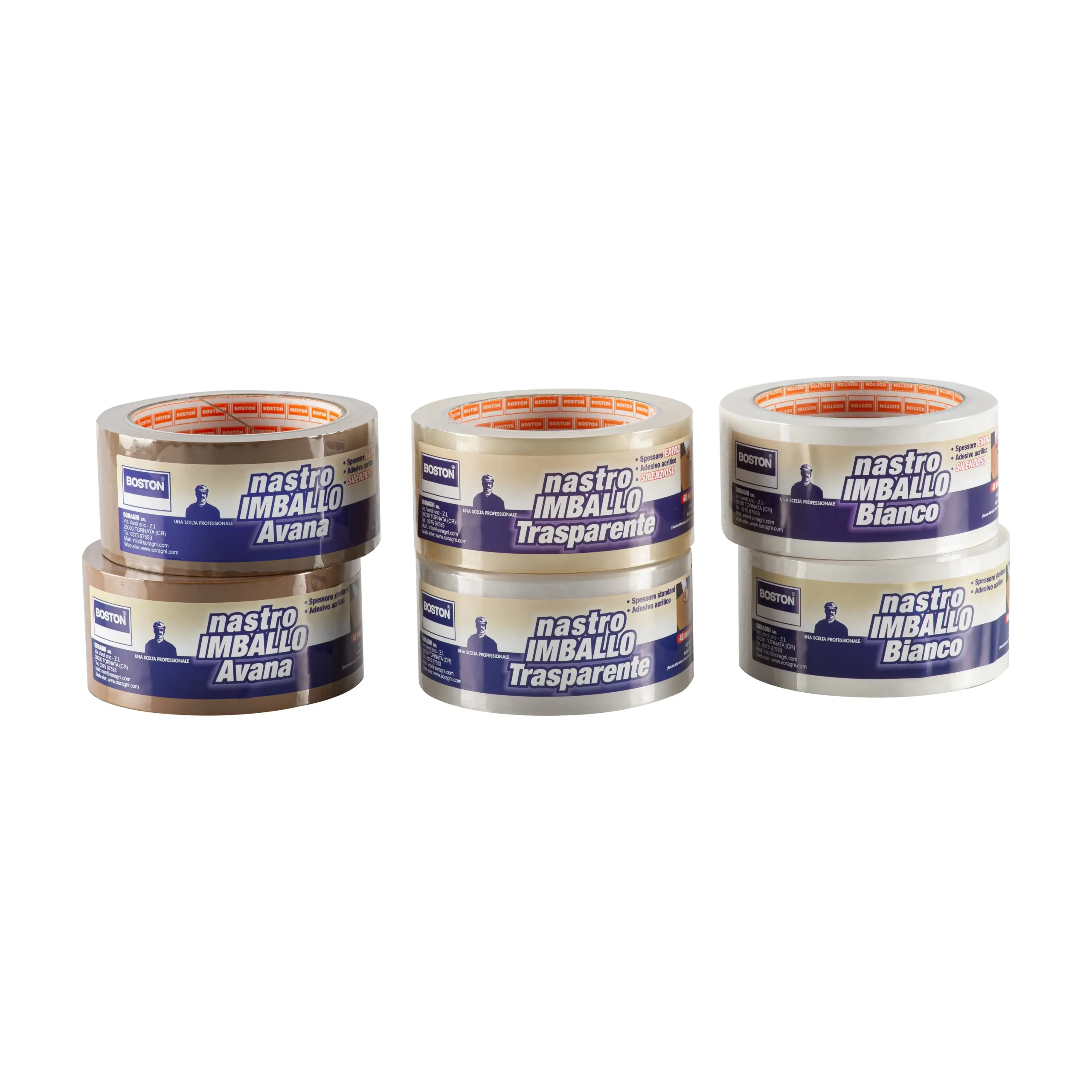 Nastro da imballo con supporto in polipropilene biorientato con adesivo acrilico a svolgimento non silenzioso.